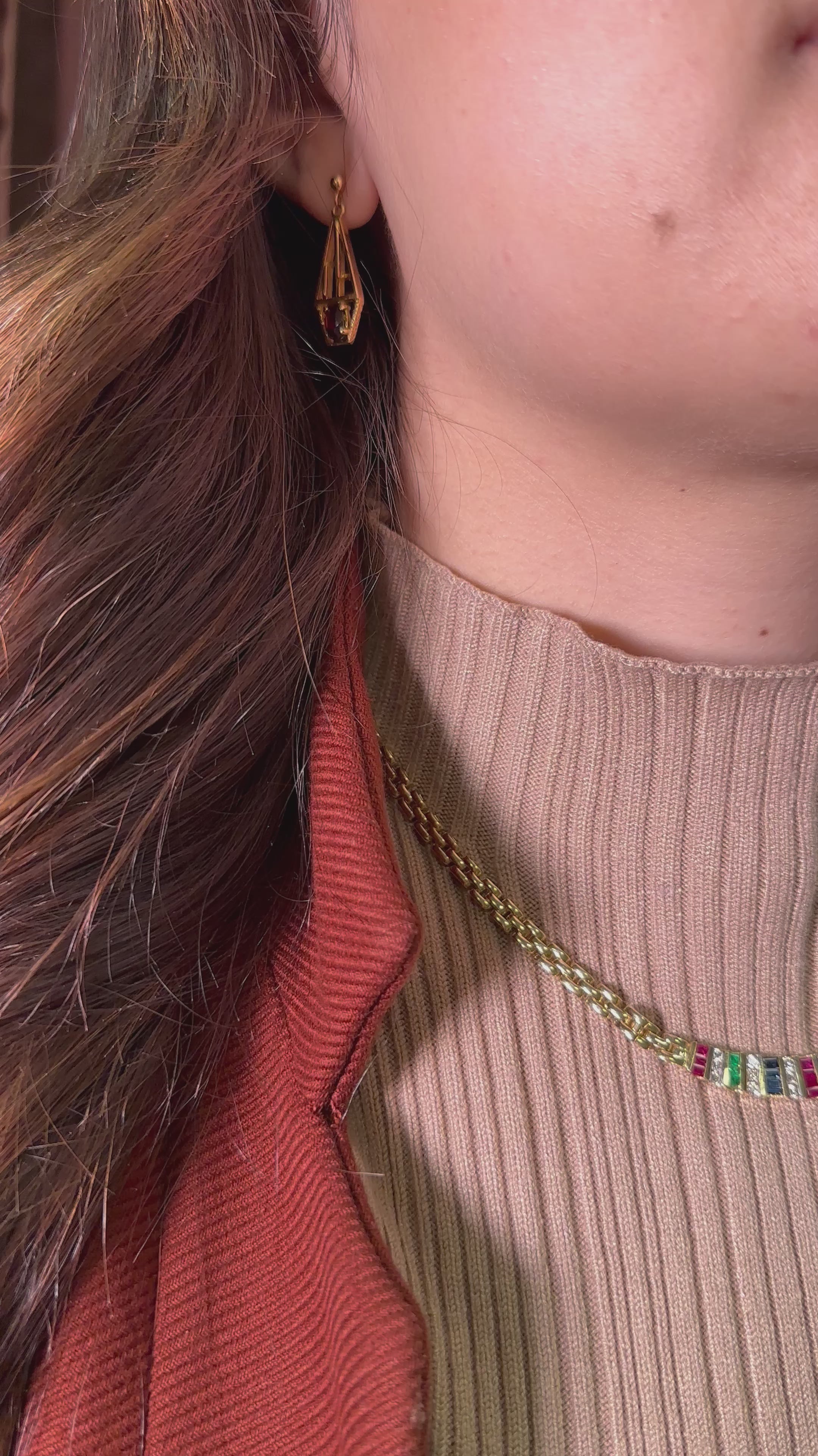 | Gemstone | Baguette Cut Rubies, Sapphires, & Emeralds, Round Brilliant Cut Diamonds |