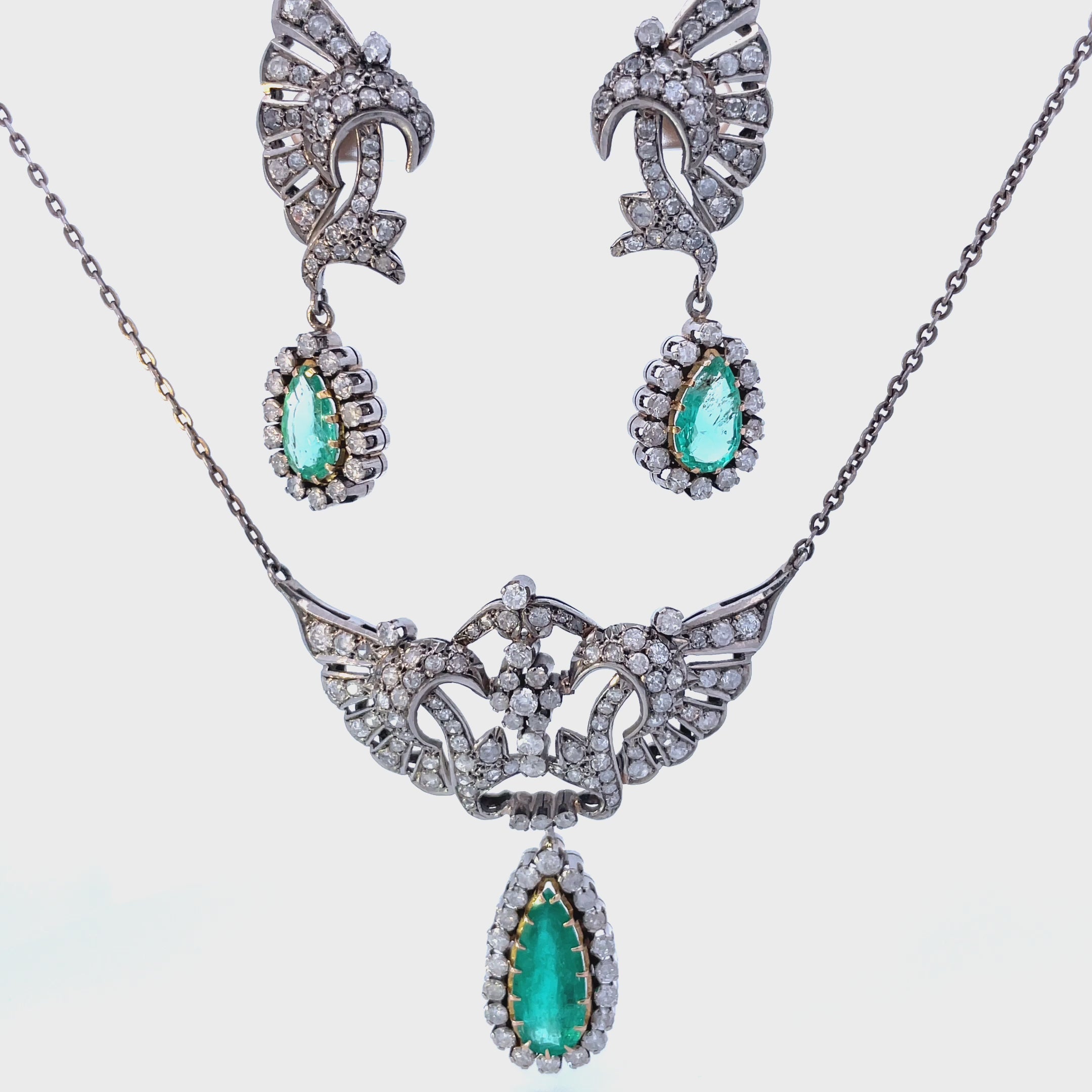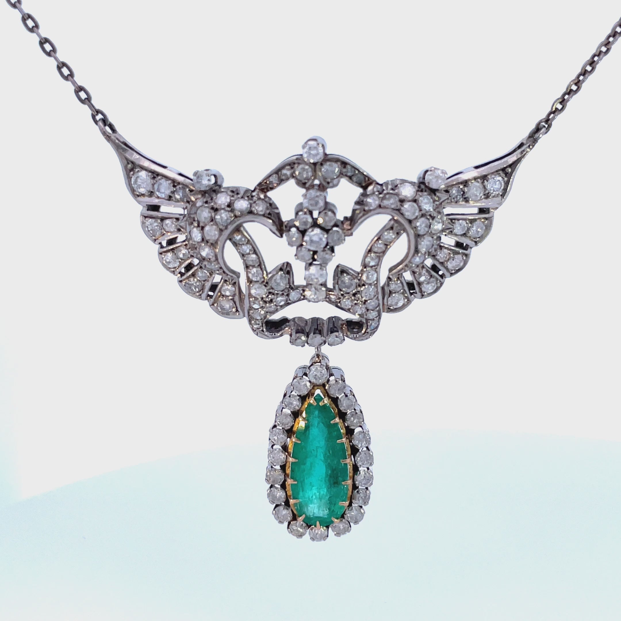 | Gemstones | Round Brilliant, European & Single Cut Diamonds, Pear Cut Columbian Emeralds |