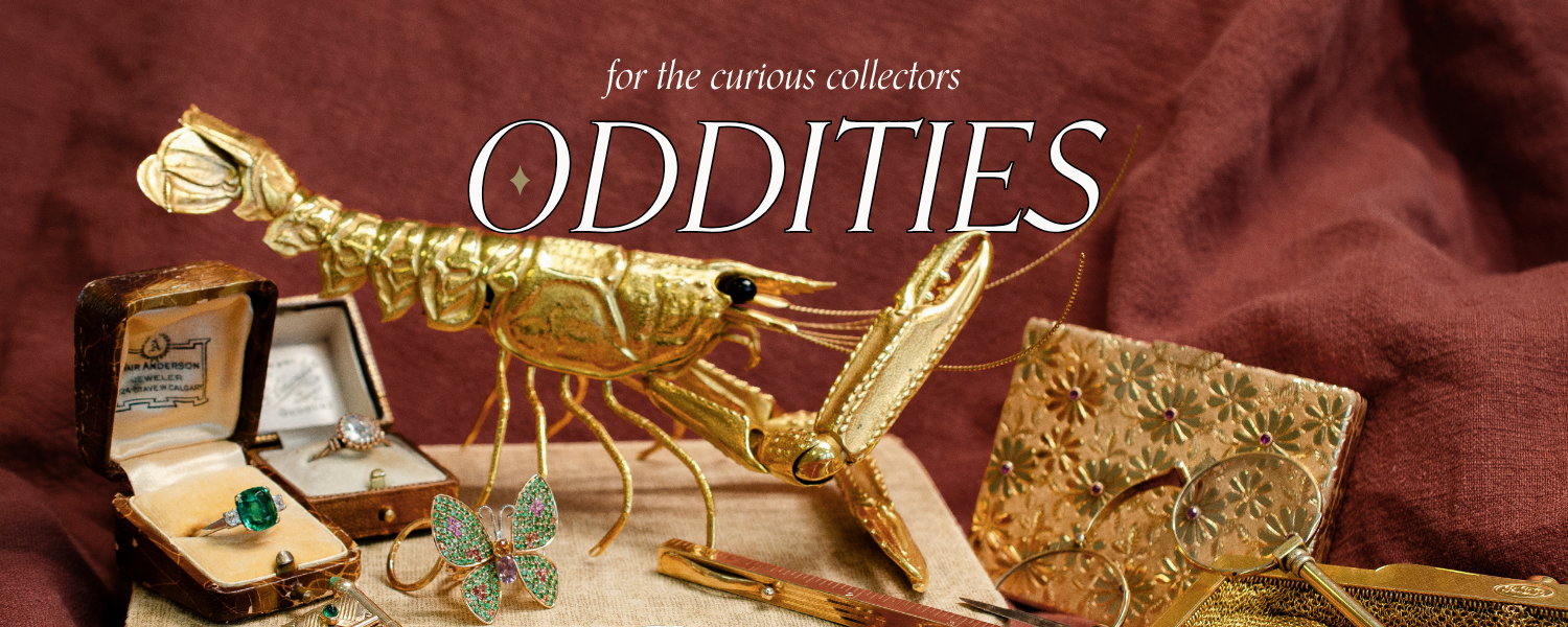 This is for the curious collectors. It's part collection, part curiosity cabinet. Each artifact once lived in pockets, purses, parlors and homes — made to last, and found again. These nostalgic, eccentric pieces are now echoes of the past, preserved in precious metal, to be enjoyed for years.