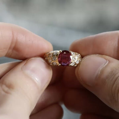 Bague vintage en rubis et diamants