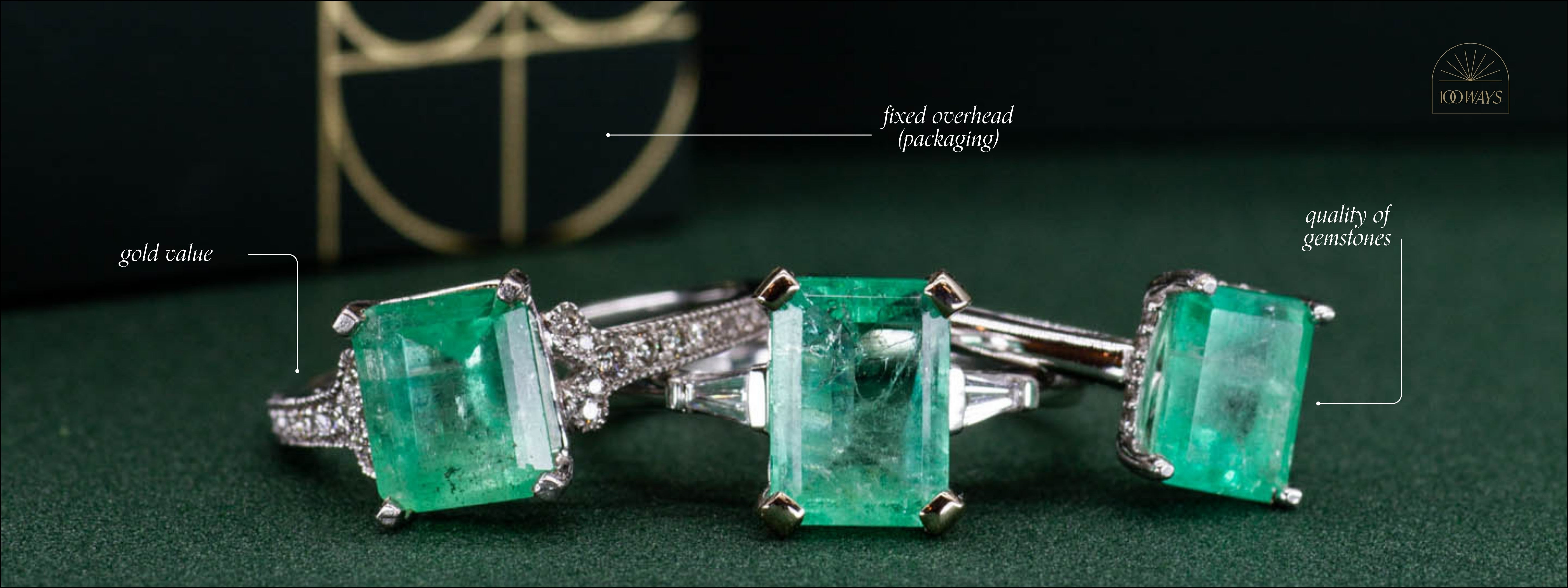 We estimate 90% of our pieces are priced using a calculator based on the above pricing model. With such a wide range of fine jewellery pieces, there are some exceptions to the rule! For exceptional pieces, we will also consider the craftsmanship, design, and rarity of the piece to finalize a price.