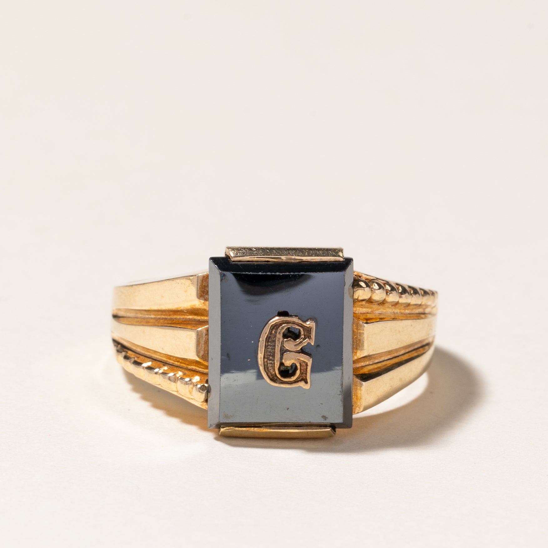 10k Onyx & White Sapphire Accent "G" Initial Signet Ring