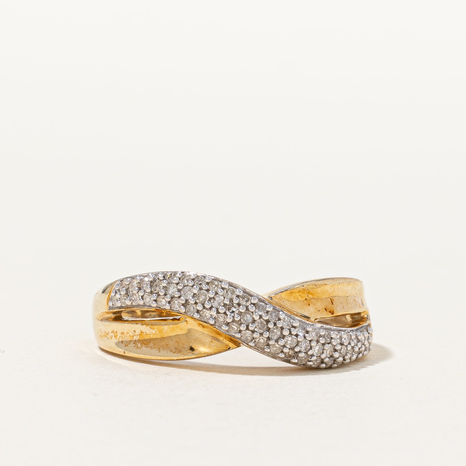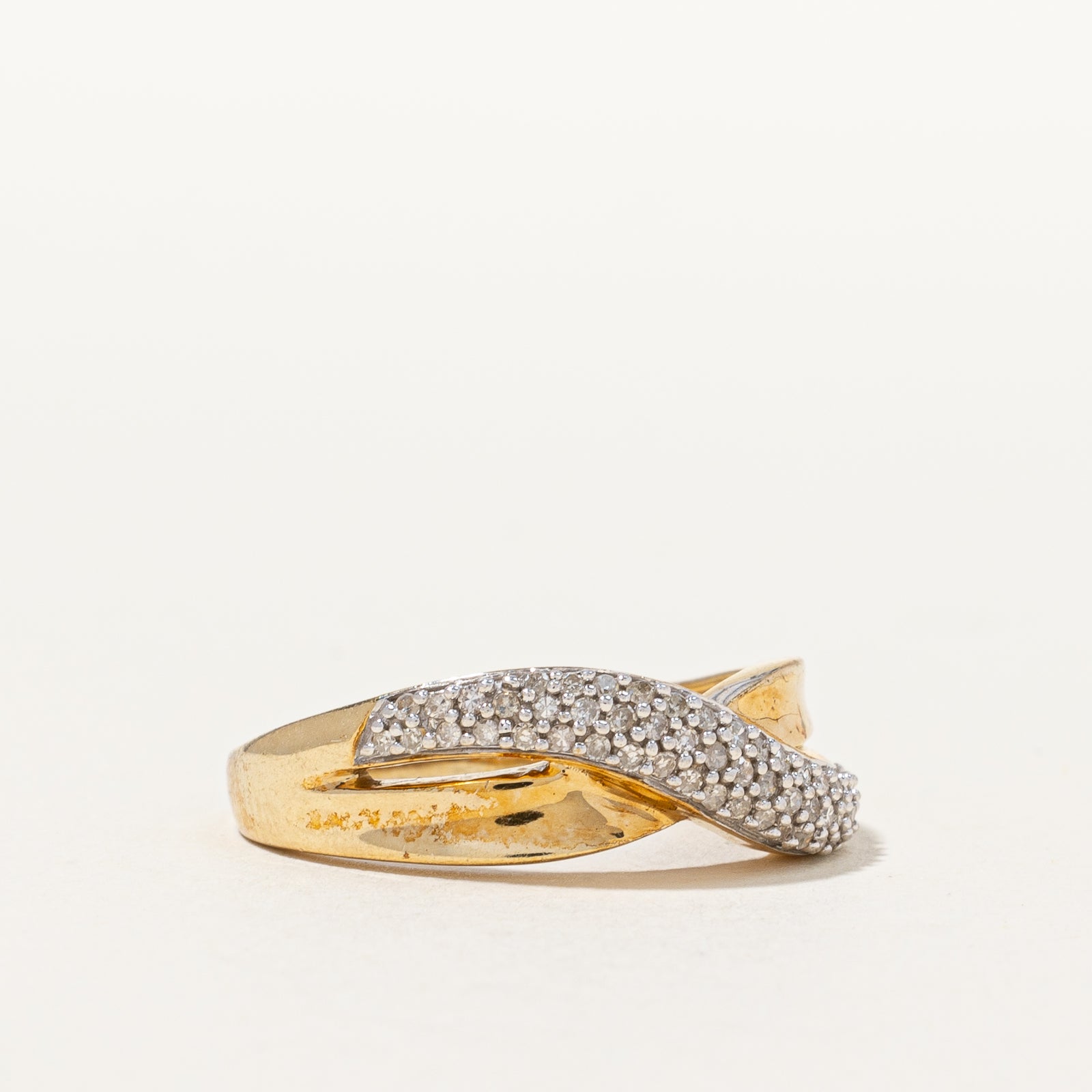 10K Pave Set Diamond Cross Over Ring | 0.24ctw | SZ 8.75