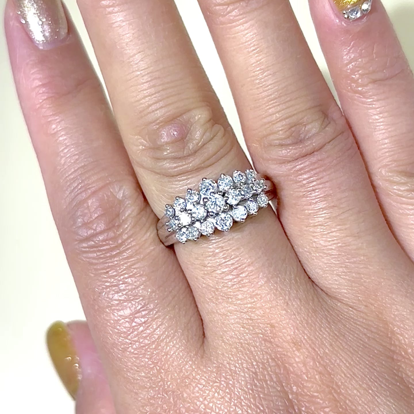 10k White Gold Triple Row Diamond Ring | 1.00ctw | SZ 7.5