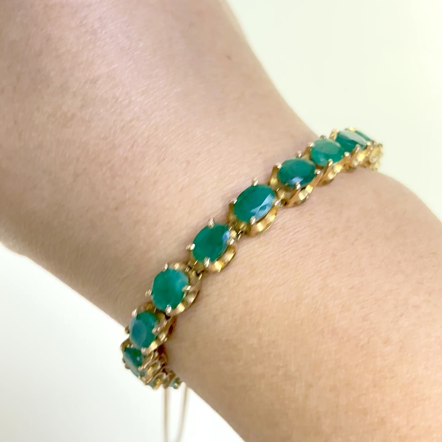 10k Yellow Gold Emerald Bracelet | 12.24ctw | 6.5"