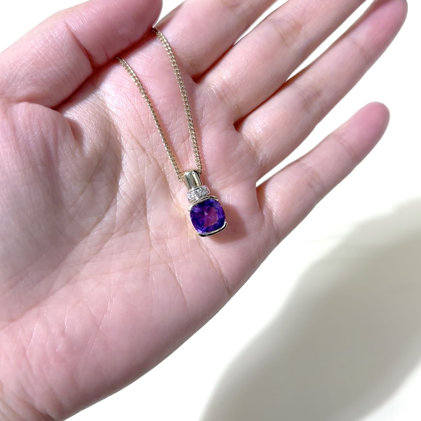 10K Yellow Gold Amethyst & Diamond Pendant Necklace