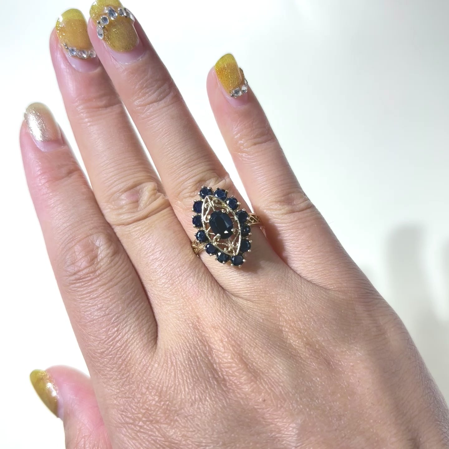 10K Yellow Gold Sapphire Ornate Navette Ring | 1.82ctw | SZ7