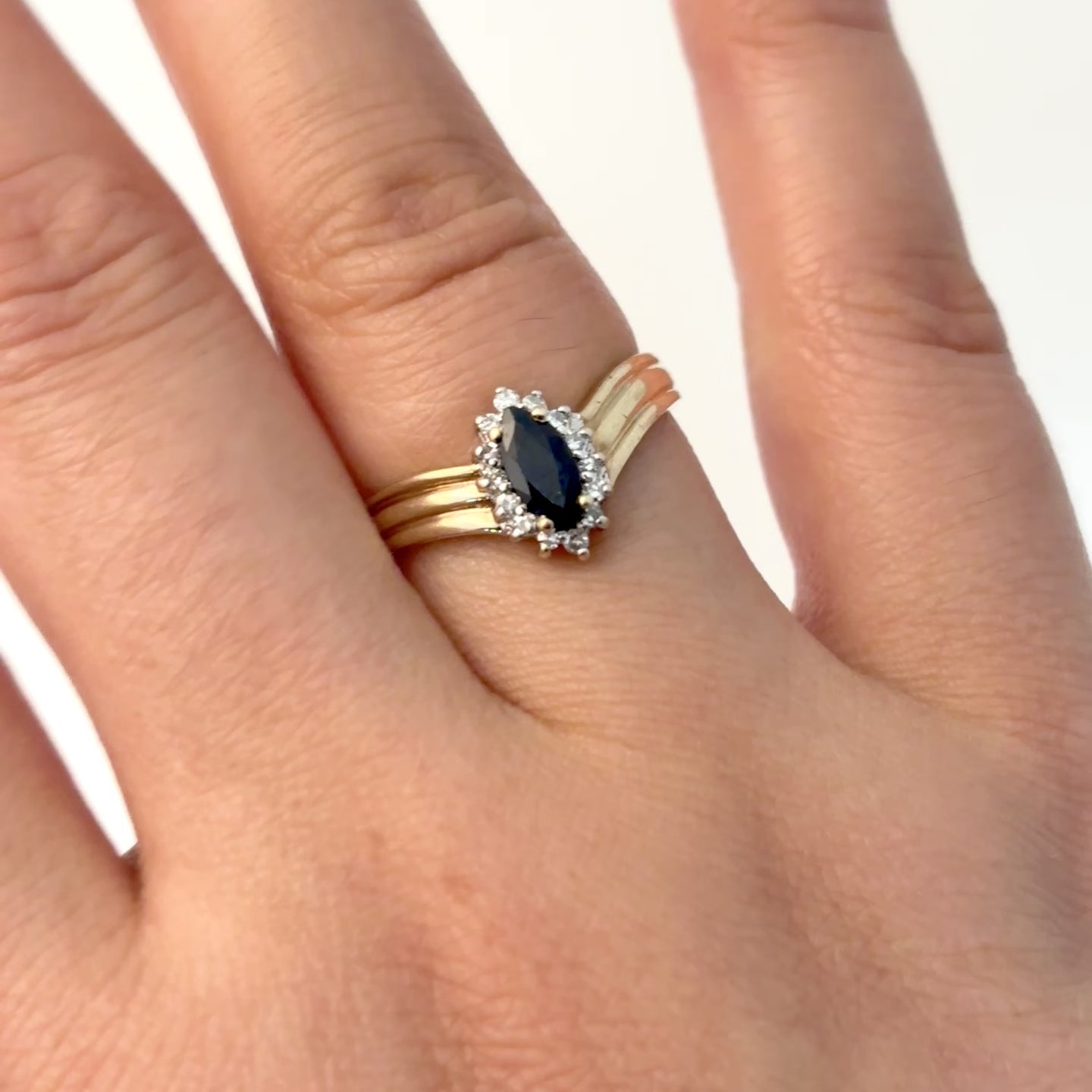 Gemstone | Marquise Blue Sapphire, Single Cut Diamond |
