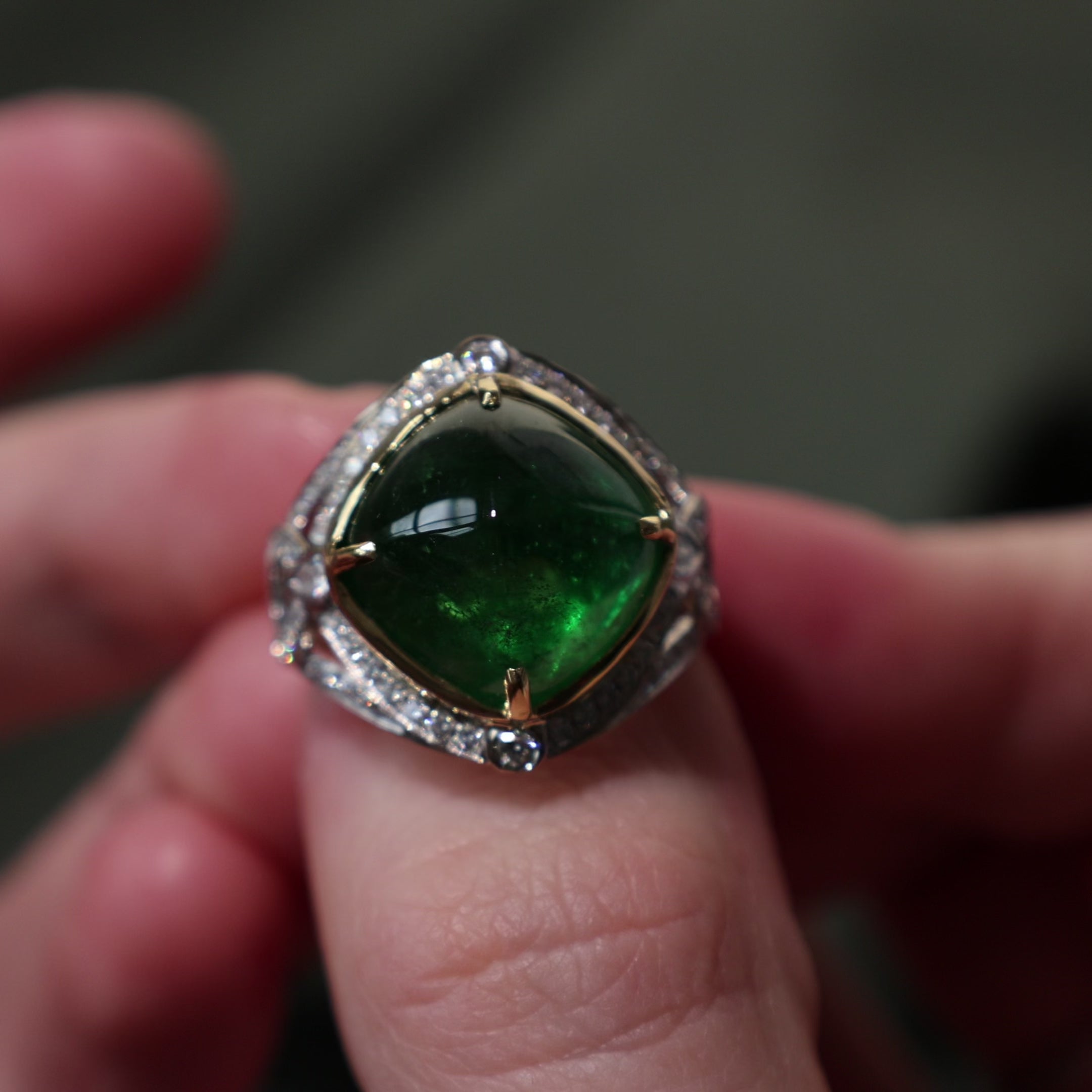 14.90ct GRS Untreated Sugerloaf Tsavorite Garnet & Diamond Ring