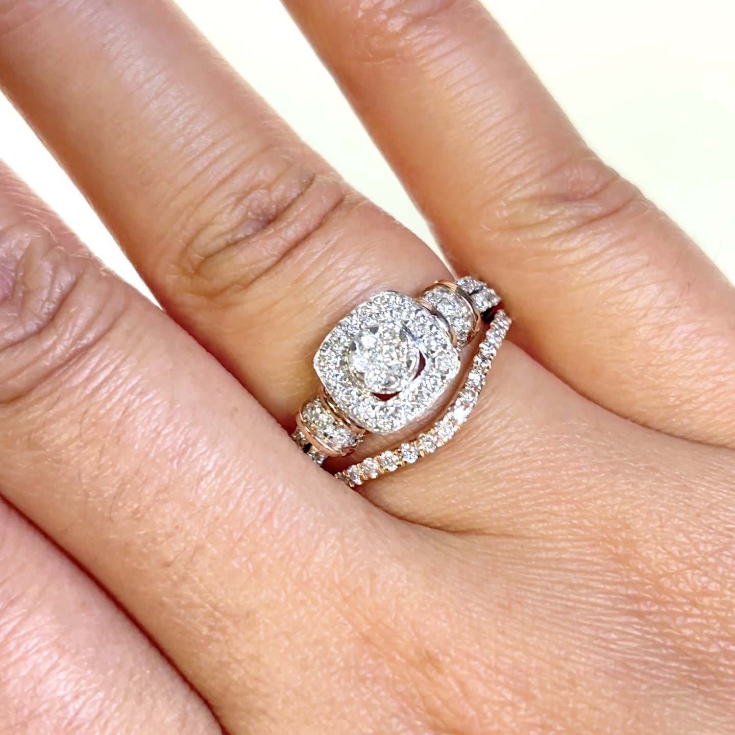 14k White & Rose Gold Diamond Wedding Ring Set | 1.03ctw | SZ 6.25