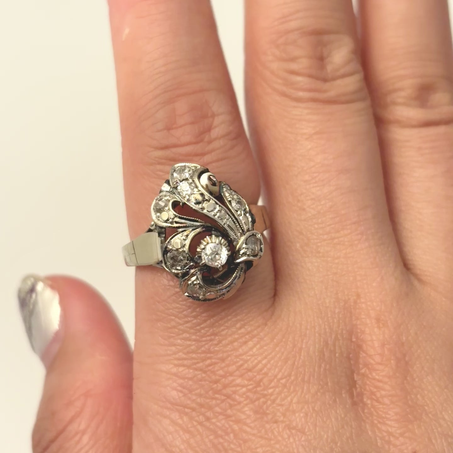 14k Art Deco Old European Cut Diamond Ring