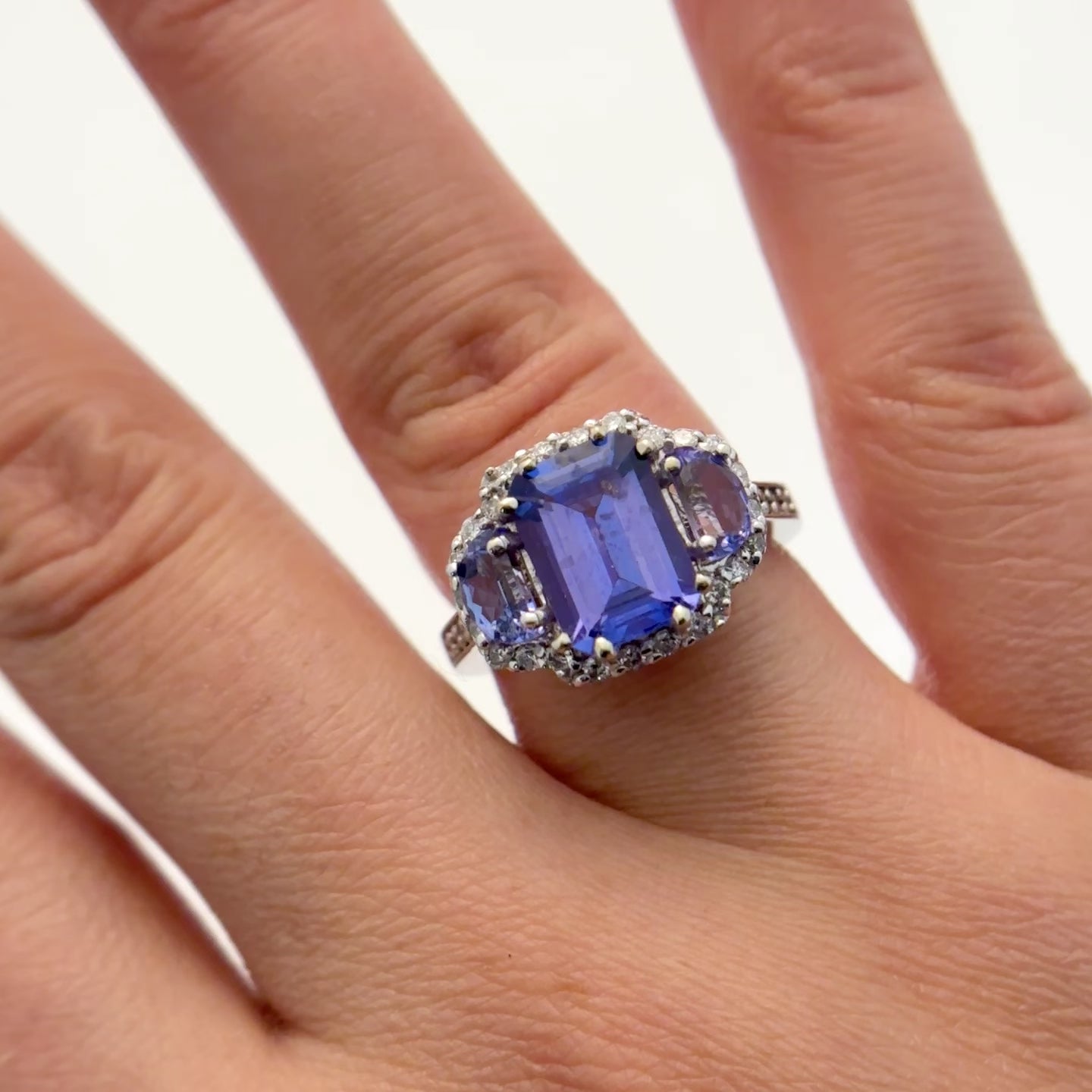 14K Tanzanite and Diamond Three Stone Ring | 3.40ctw, 0.50ctw | SZ 6.75 |