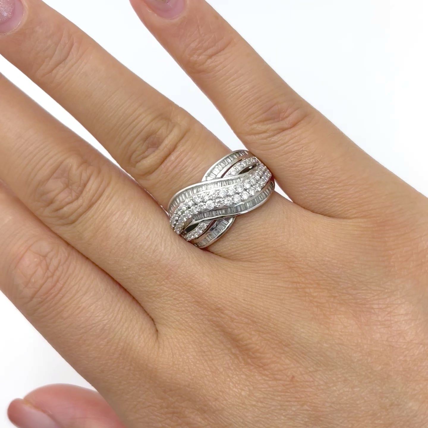 14k White Gold Cross Over Diamond Ring | 1.03ctw | SZ 8