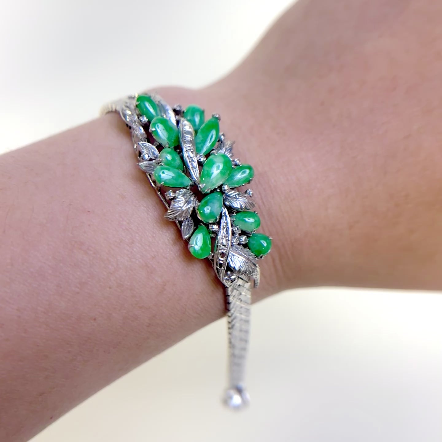14k White Gold Jade Bracelet | 9.00x4.00x1.50mm | 6.25"