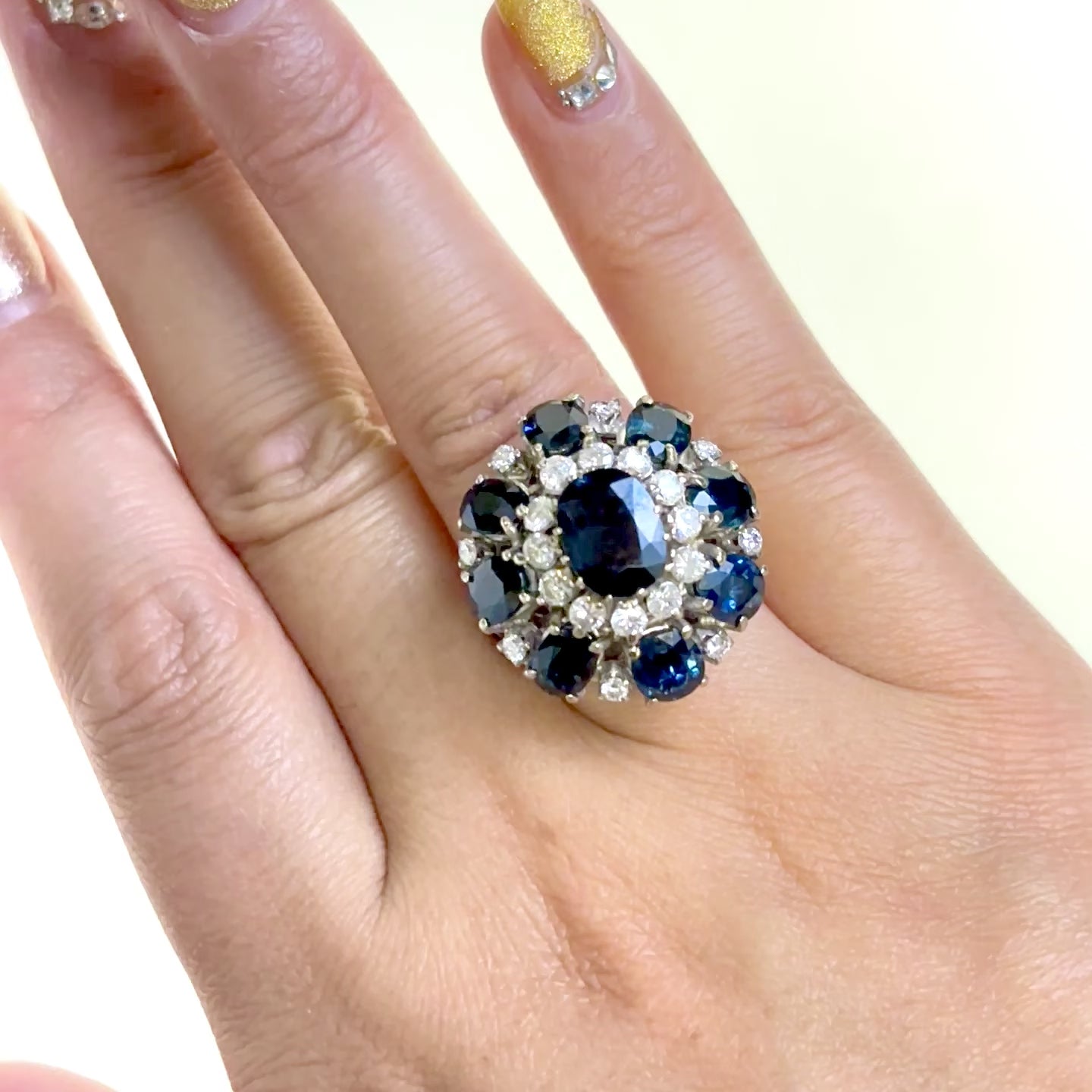 14k White Gold Sapphire & Diamond Ring | 9.32ctw, 0.54ctw | SZ 6.5
