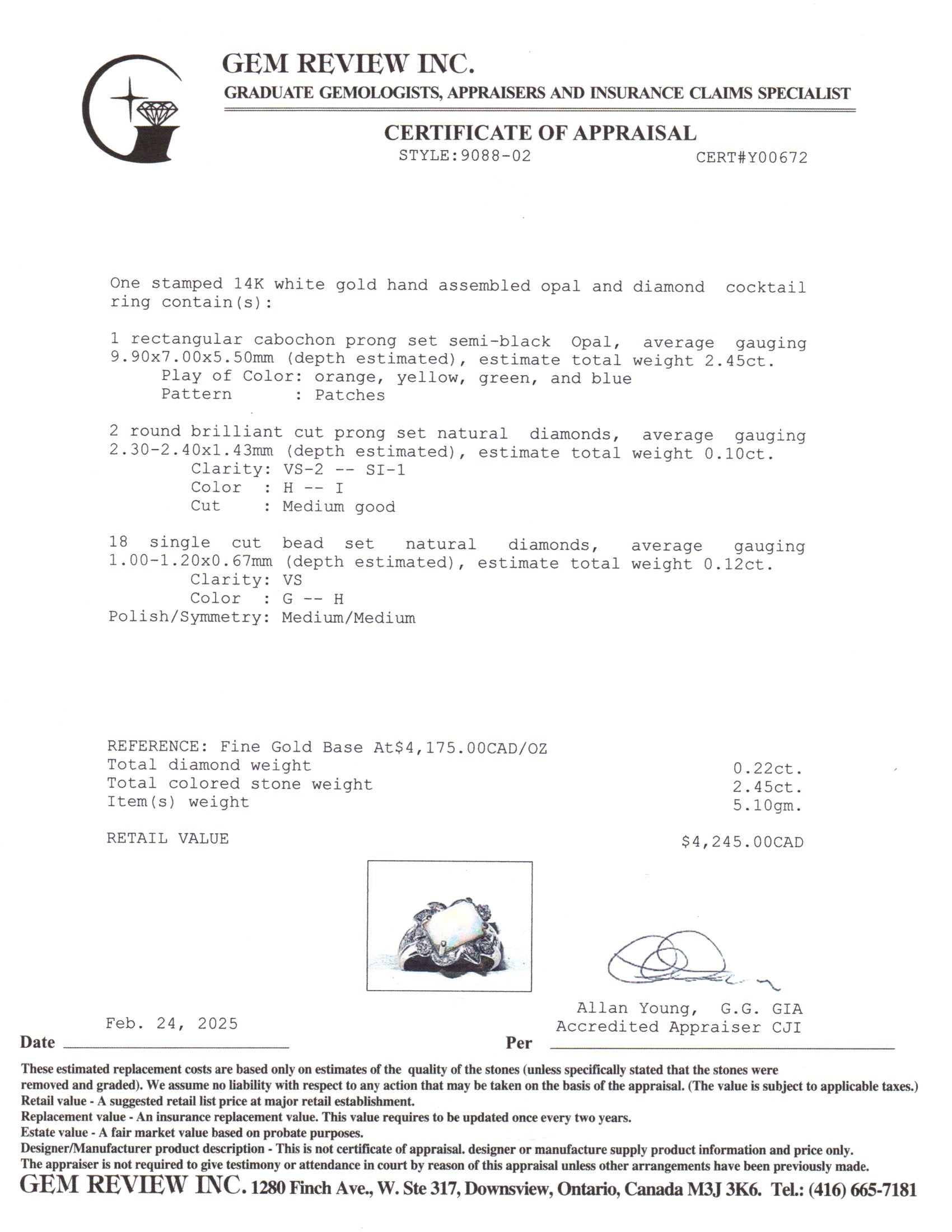 Semi Black Opal & Diamond Cocktail Ring | 2.45ct, 0.22ctw | SZ 6
