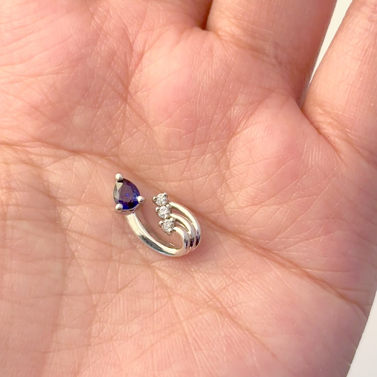 | Gemstones | Pear Sapphire, Round Brilliant Cut Diamond |
