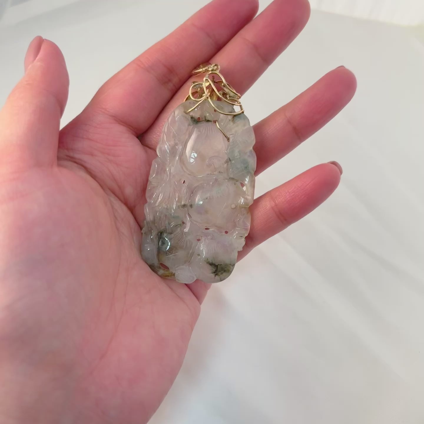 14k Yellow Gold Carved Jadeite Pendant | 95ct