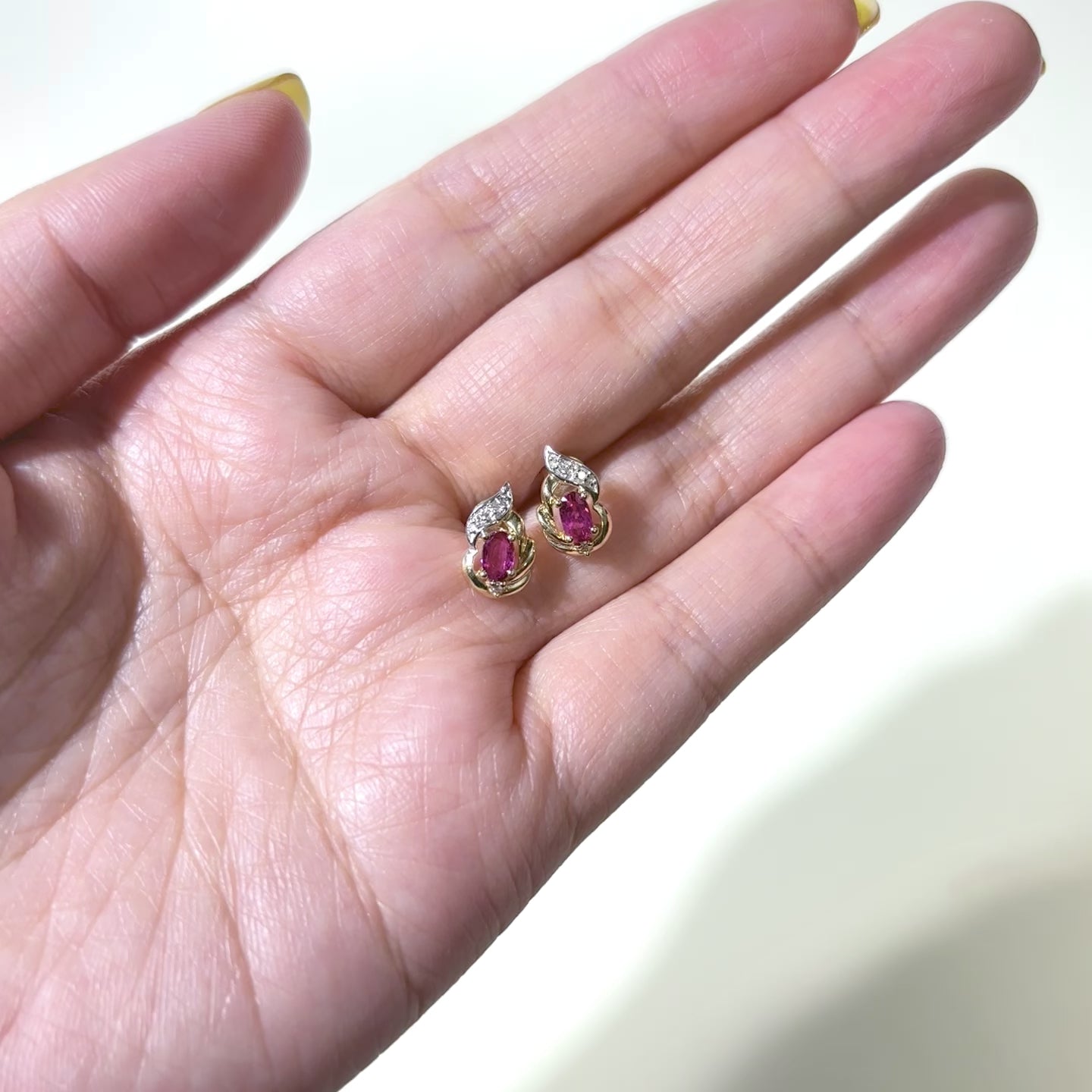 14K Oval Cut Ruby & Diamond Stud Earrings | 0.46ctw, 0.003ctw