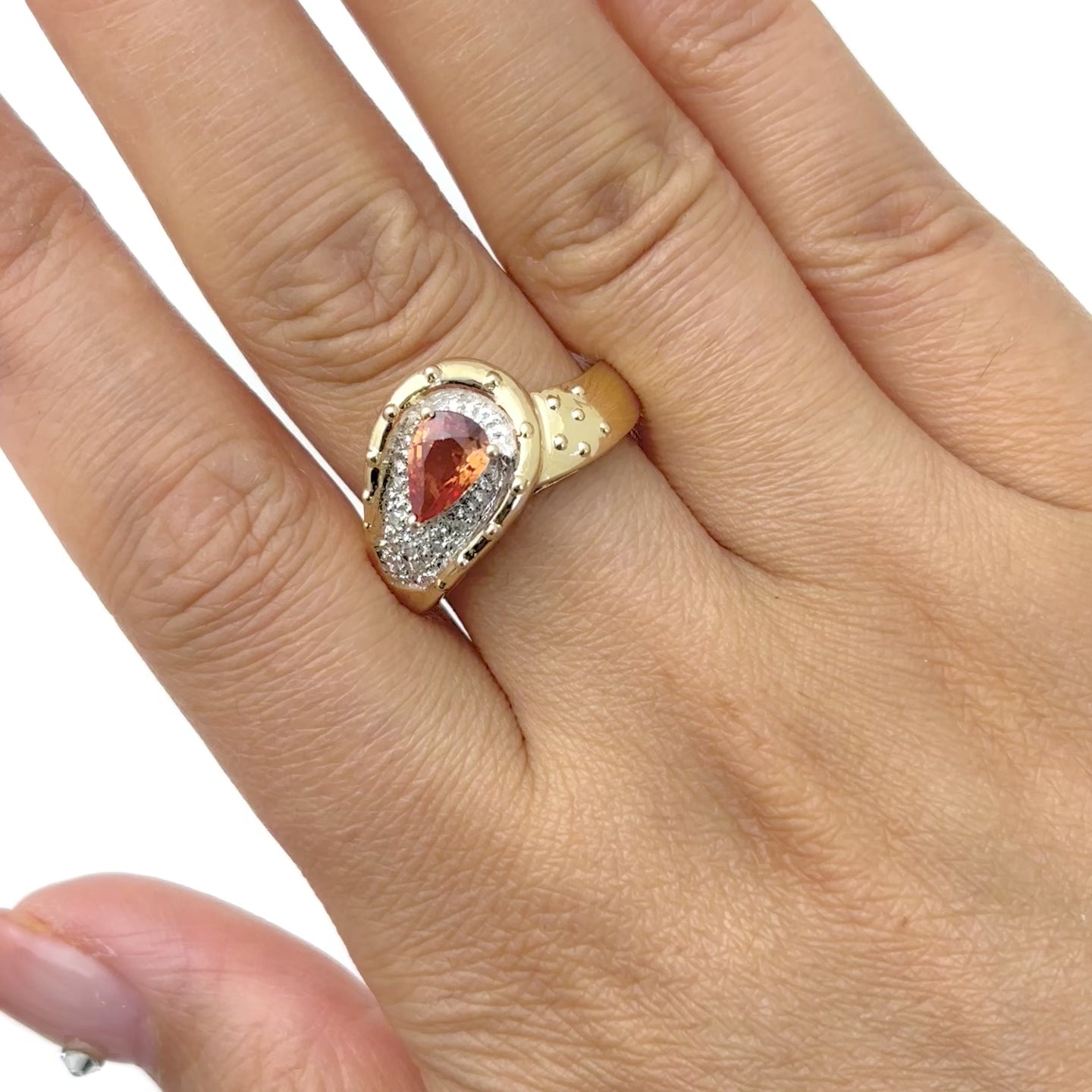 14k Yellow Gold Orange Sapphire and Diamond Ring