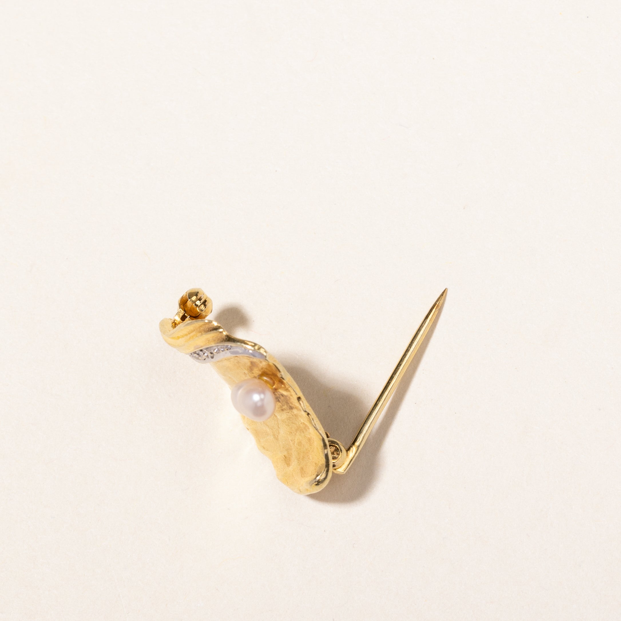 14K Yellow Gold Pearl & Diamond Abstract Brooch | 0.015ctw