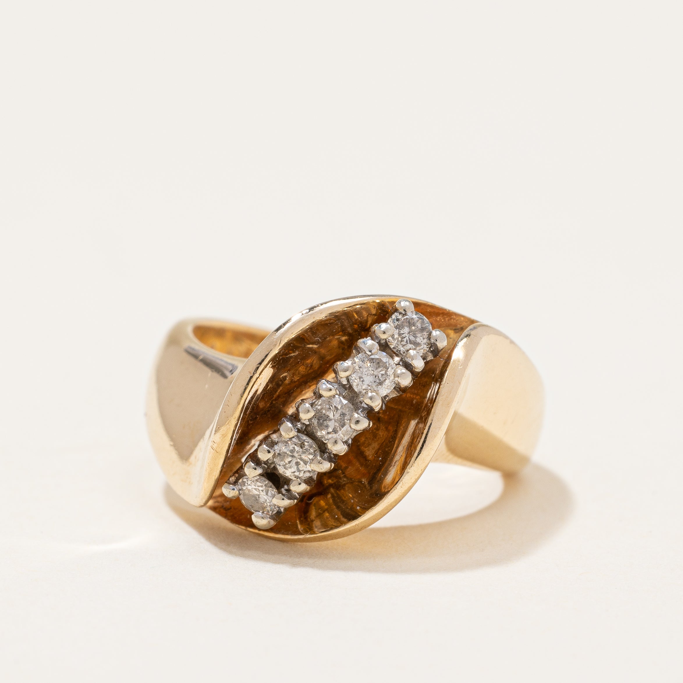 14K Yellow Gold Pearl & Diamond Abstract Brooch