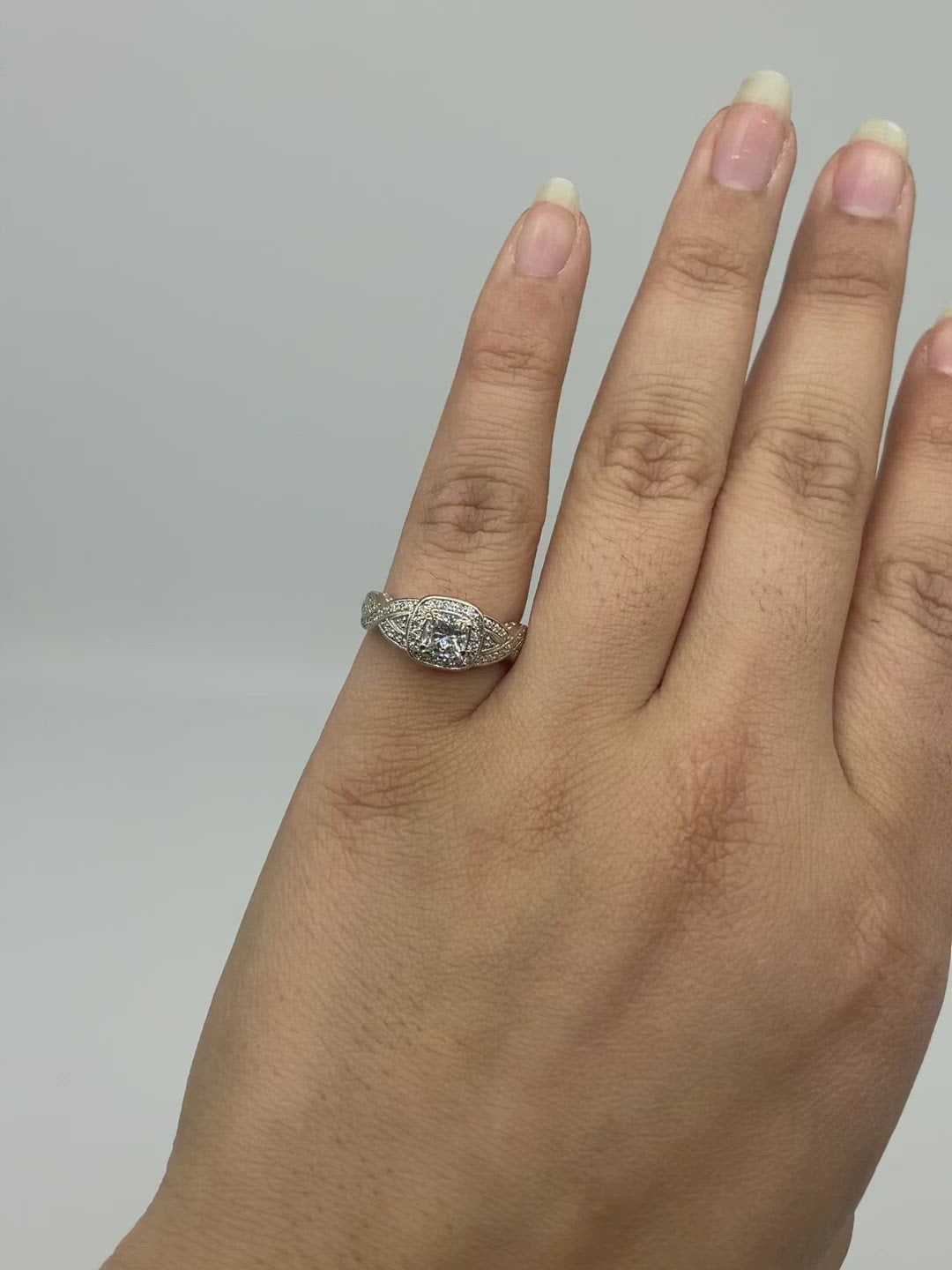 Princess Cut Diamond Halo Cross Over Engagement Ring | 1.05ctw SI1 I | SZ 7