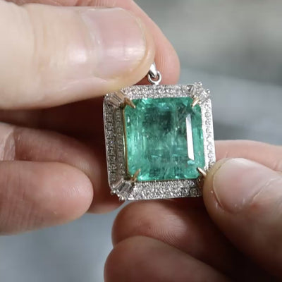 20.30ct GRS No Oil Emerald & Diamond Halo Pendant