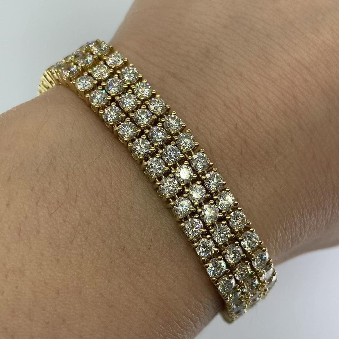 Vintage 18K gold triple-row 15.00ctw Natural Diamond Tennis Bracelet | 15.00 ctw | 7.5" |