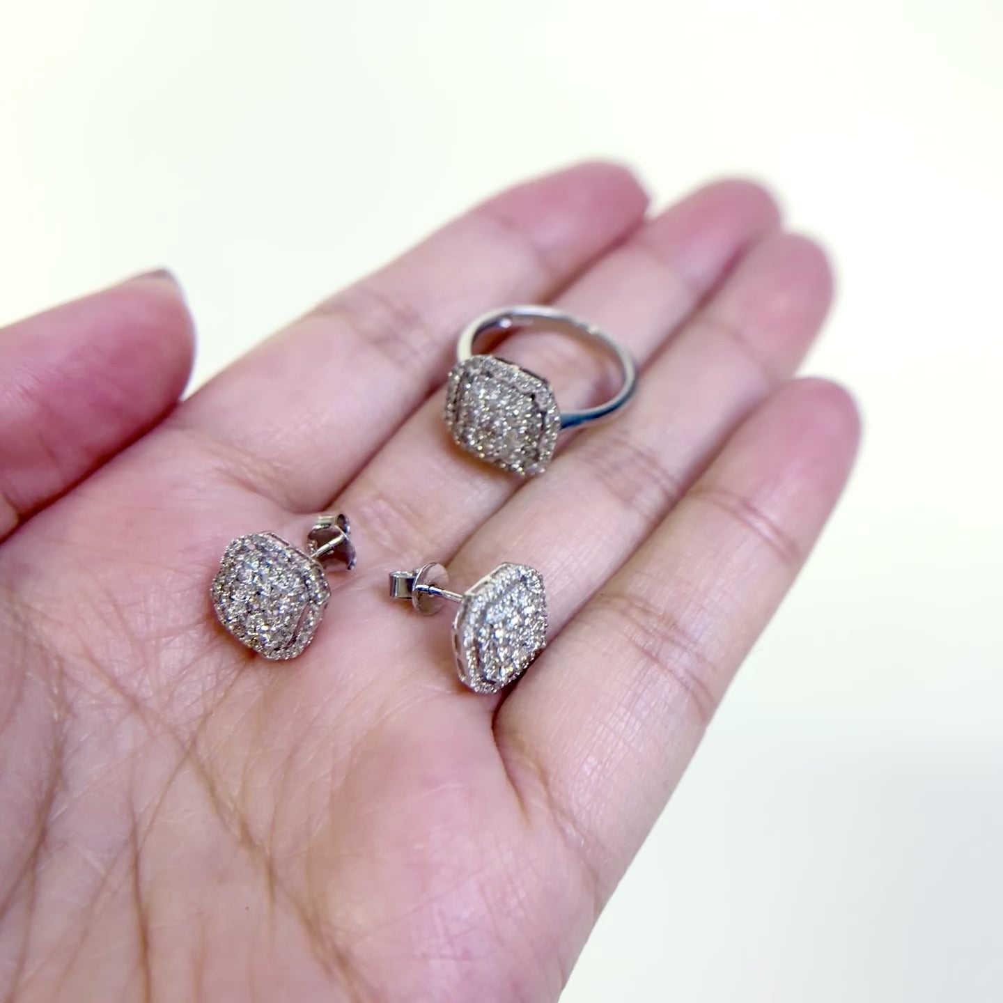 18k White Gold Diamond Ring & Earring Set | 3.91ctw | Sz 6.5