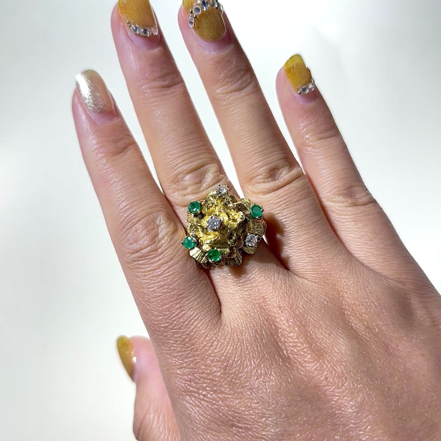 18K Emerald & Diamond Flower Dome Ring | 0.34ctw, 0.24ctw | 9