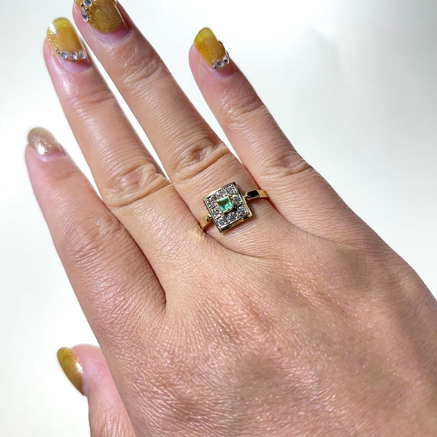 18K Yellow Gold Emerald & Diamond Grid Ring