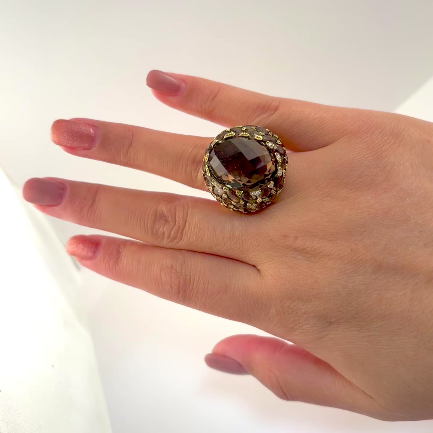18k Yellow Gold Smoky Quartz and Diamond Ring