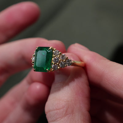 4.83ct AGL Brazilian Emerald & Diamond Ring | AGL 4.83ct | 1.00ctw | SZ 7