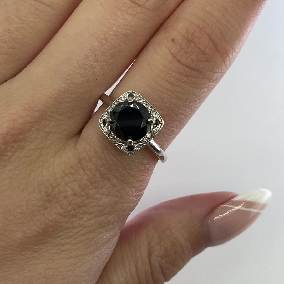 Black Diamond Halo Engagement Ring