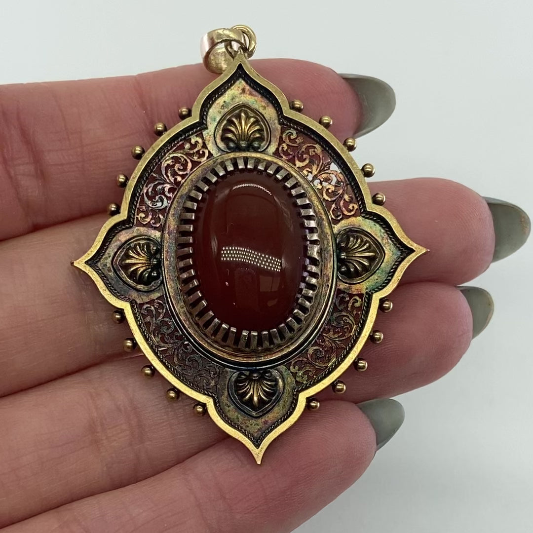 This Bespoke piece was made from a Victorian era brooch. Please note the bail is made from 10k yellow gold.