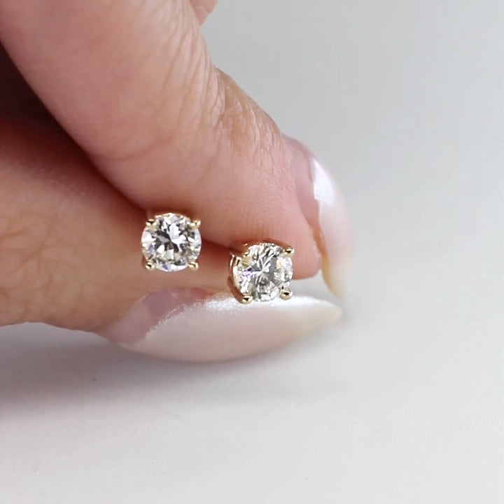 These ethically crafted diamond stud earrings are is part of our in house 100 Ways collection of new fine jewellery made with recycled materials. Featuring natural diamonds repurposed from vintage jewellery and set into new mountings made from recycled gold. The diamonds were paired and graded by our GIA certified gemologist and set locally in Vancouver, BC.