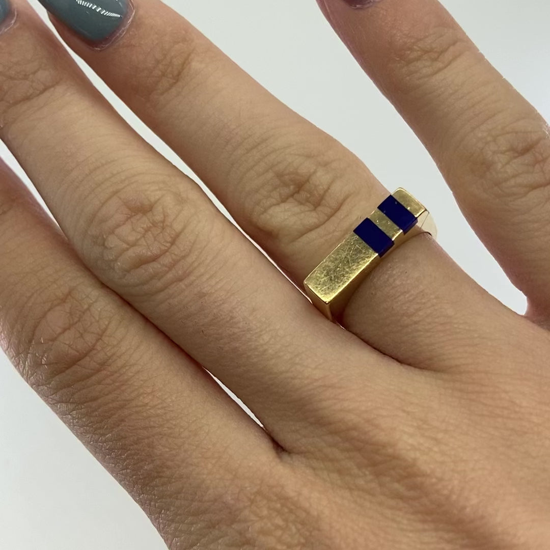 'Cavelti' Lapis Lazuli Gold Bar Ring | 0.30ctw | SZ 4.75 |