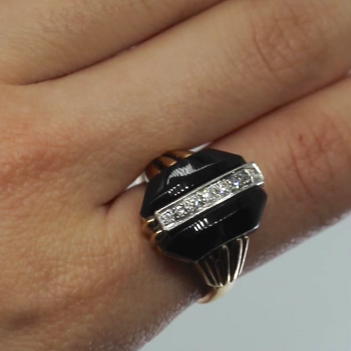 Black Onyx & Diamond Ring | 0.15ctw, 7.00 t | SZ 6.25 |