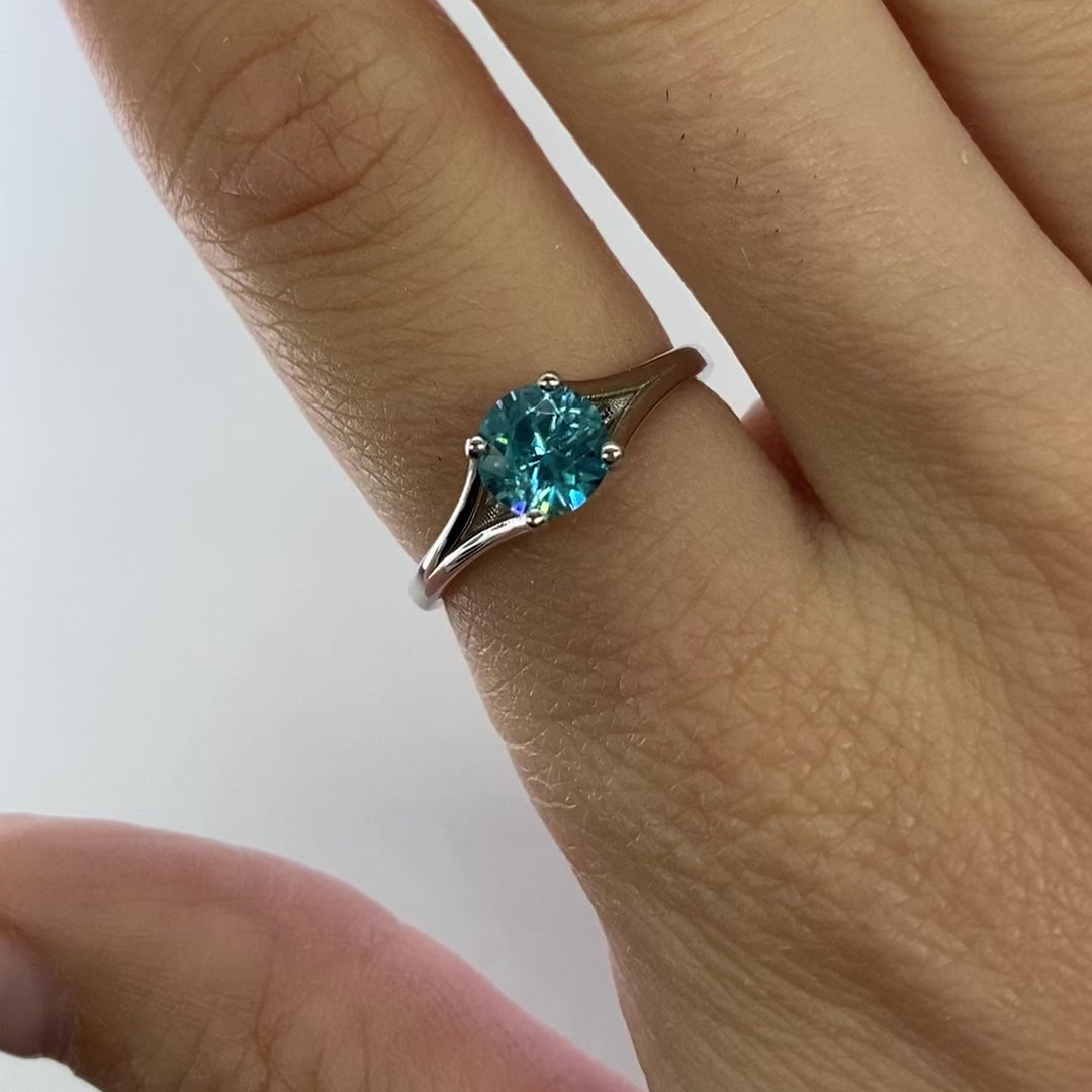 '100 Ways' Split Shank Platinum Blue Zircon Ring