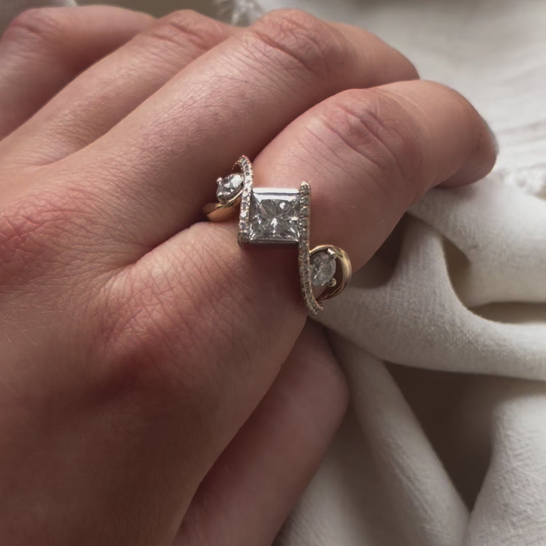 Mixed Cut Diamond Bypass Engagement Ring