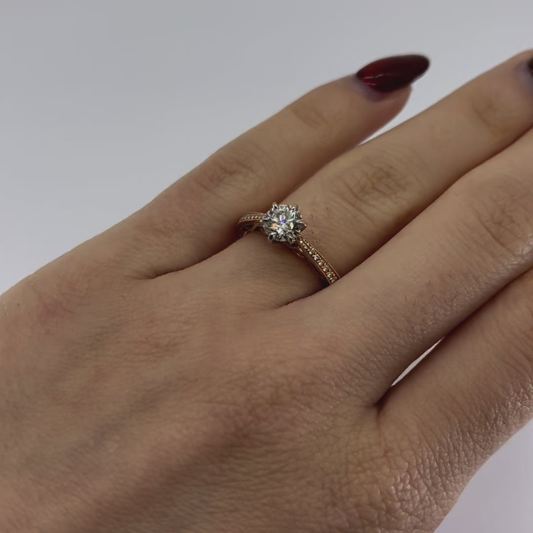 Scroll and Milgrain Design 6-Prong Diamond Engagement Ring