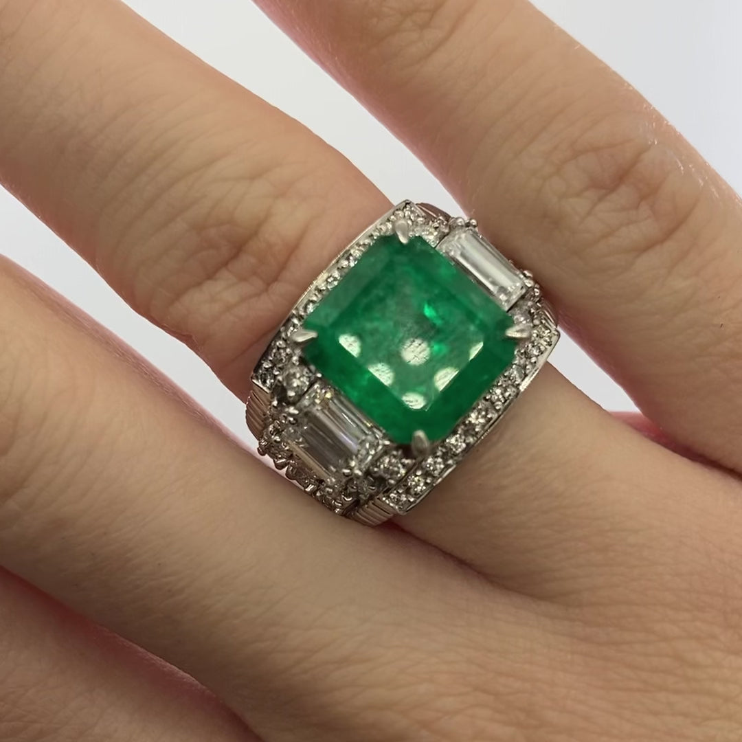 Emerald & Baguette Diamond Ring | 4.64ct, 1.96ctw | SZ 5.75 |