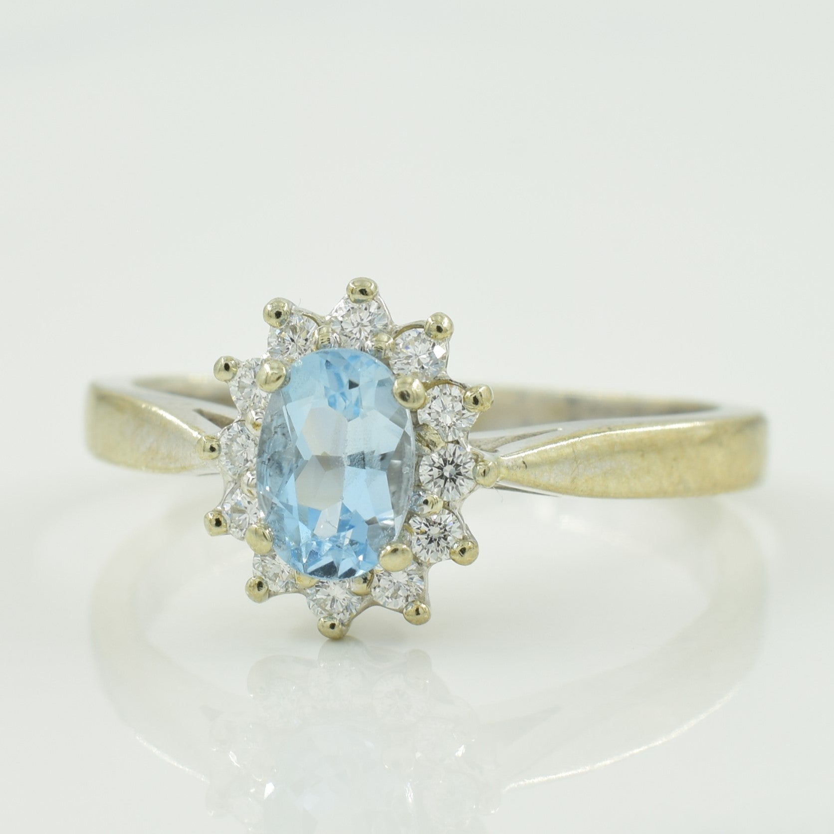Halo Blue Topaz and Diamond Ring | 0.24 ctw SZ 6.75 |