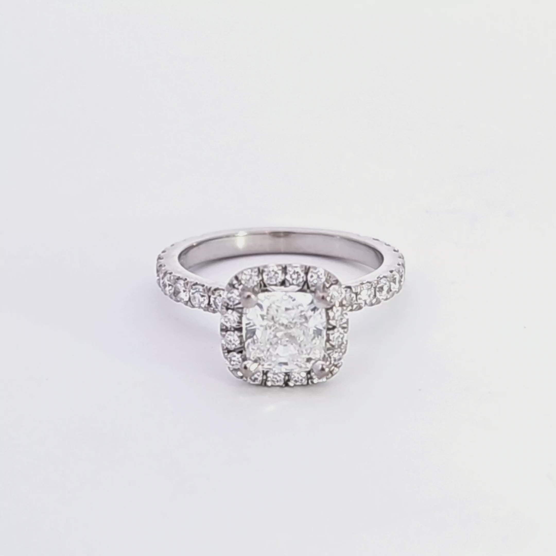 GIA Graded Cushion Cut Diamond Halo Engagement Ring | 1.62ctw | SZ 5 |