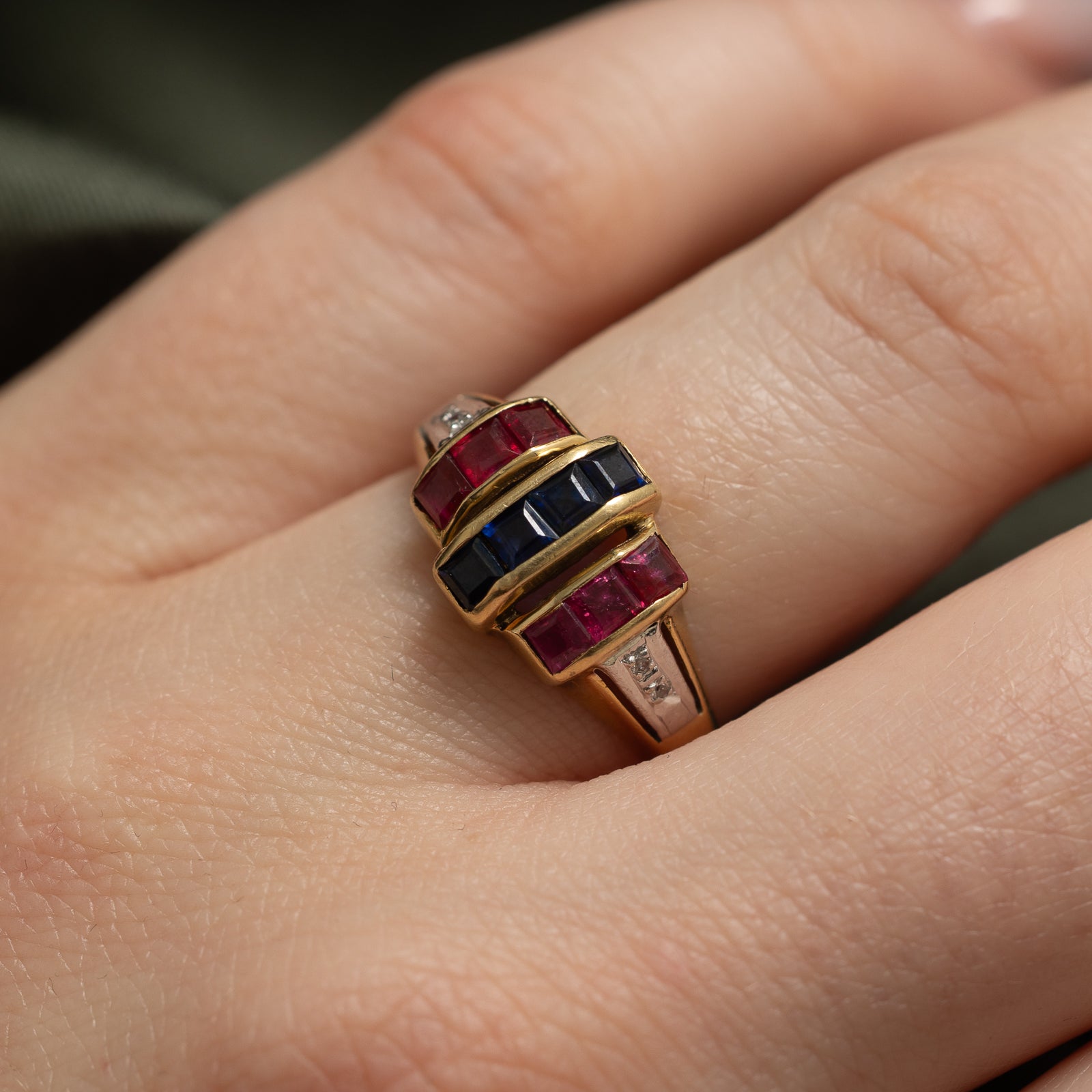 Sapphire, Ruby & Diamond Multi Column Ring | 0.02ctw, 1.26ctw | SZ 7