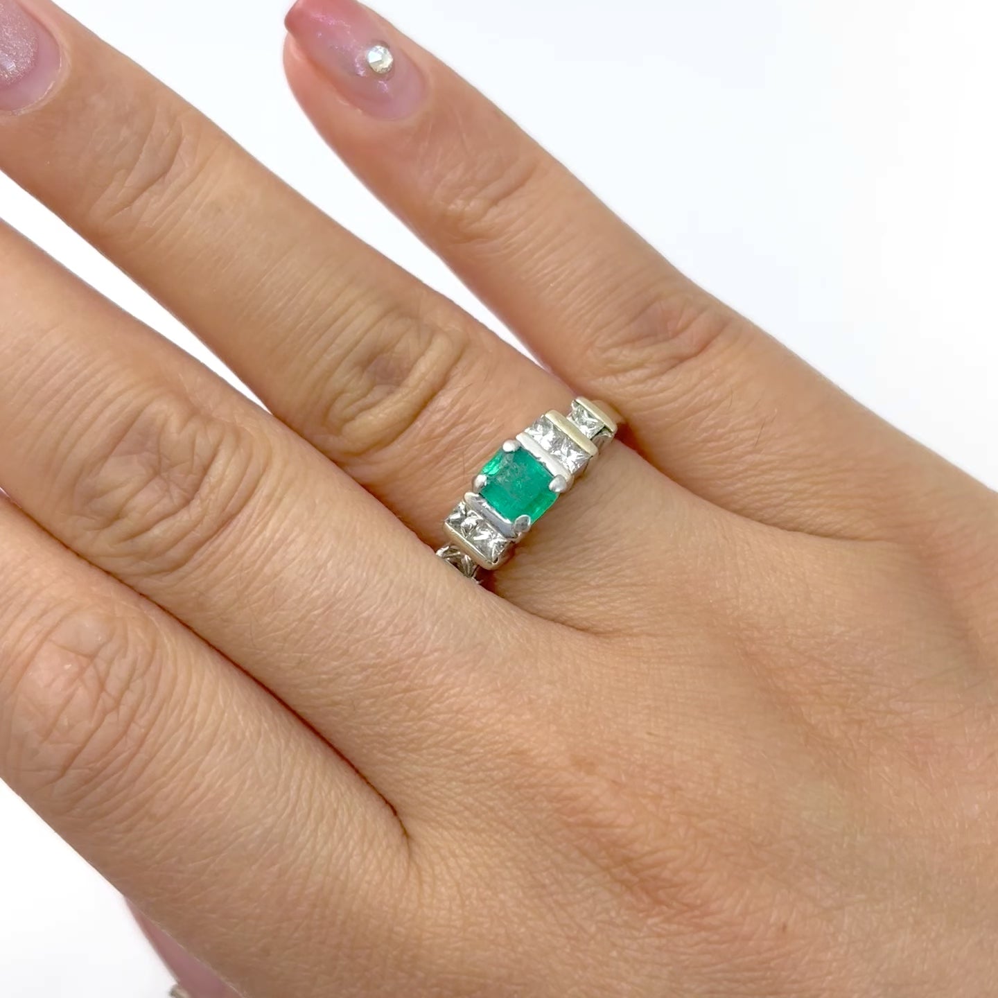 Platinum & 18k White Gold Emerald and Diamond Ring | 0.55ct, 0.54ctw | SZ 7.5
