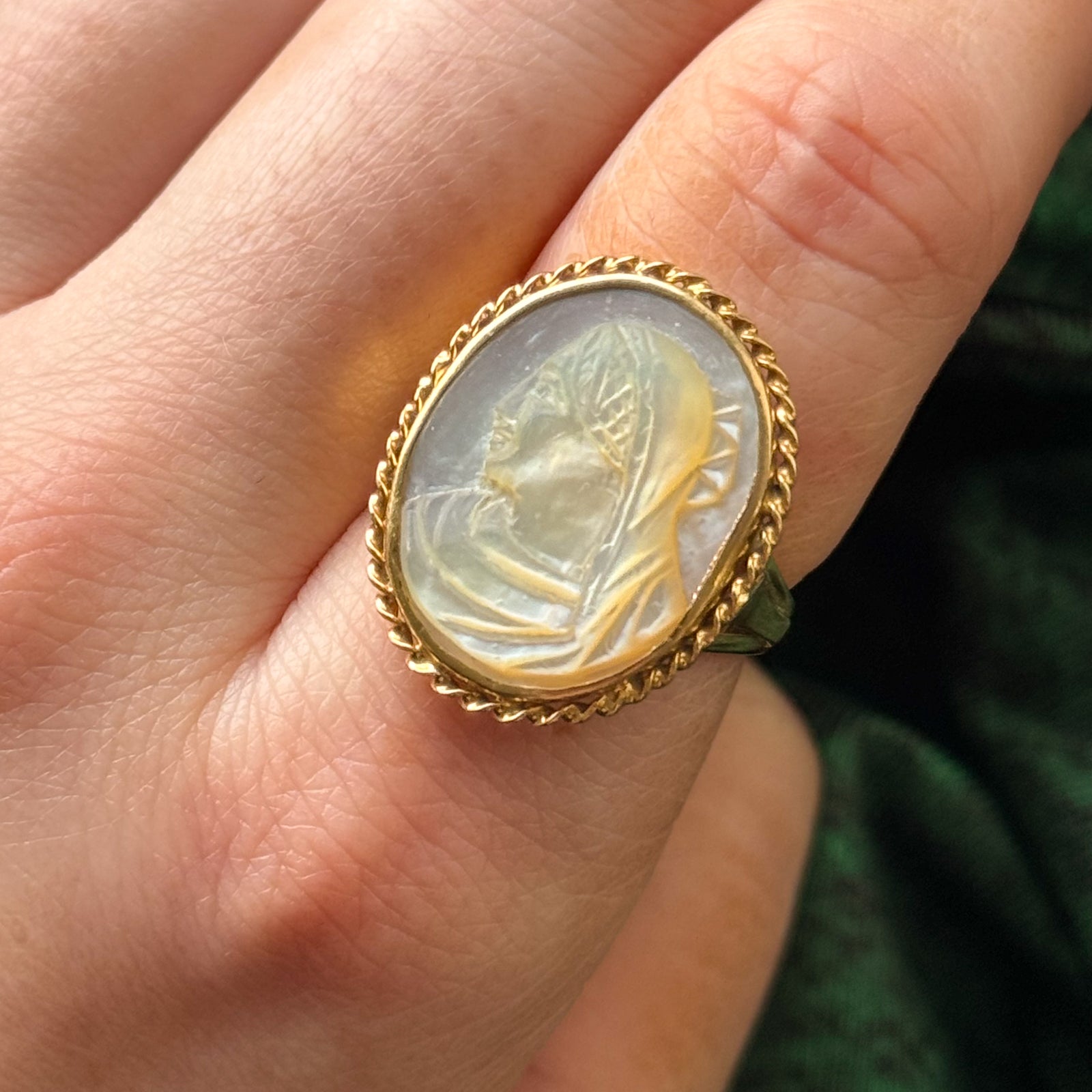 Vintage Mother of Pearl Carved Cameo Ring | 4.50ct | SZ 7.5 |