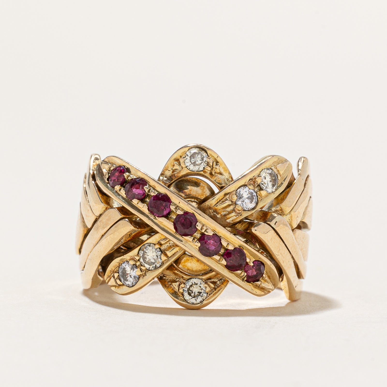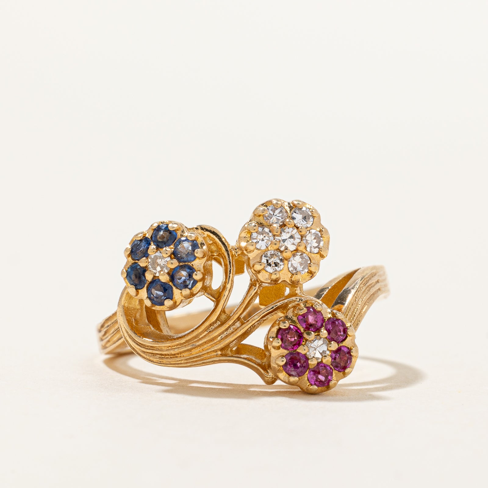 Multi Gemstone & Diamond Multi Row Ring | 0.30ctw, 0.07ctw | SZ 6.25