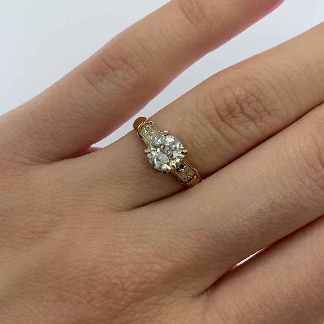 0.81ct | SZ 4.75| Metal | 14k Yellow Gold with 14k White Gold claws and accents |